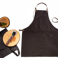 Набор: фартук из натуральной кожи в тубусе, черный с рыжими ремнями