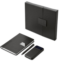 Подарочный набор "Tesla" с блокнотом А5, ручкой и пауэрбенком на 10 000 mAh, черный