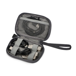 Органайзер для проводов – практичное решение для организации хранения различных шнуров к электронным аксессуарам. Органайзер изготовлен из плотного материала, устойчивого к разрыву, благодаря чему надежно защищает содержимое от механических повреждений. • Сетчатый карман и отсеки на резинке позволяют аккуратно распределить провода так, чтобы они не спутывались и были легкодоступны в любой момент • Компактные размеры и наличие ремешка делают органайзер удобным для ношения с собой – он легко помещается в кармане или сумке