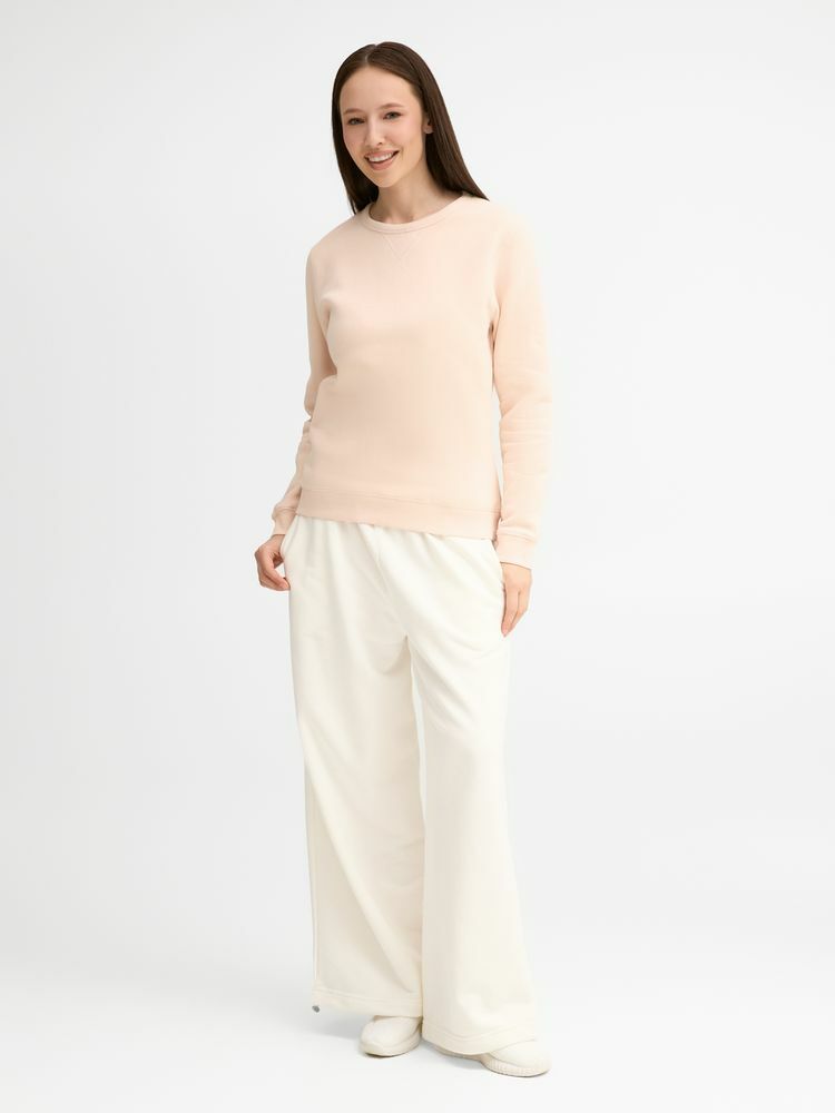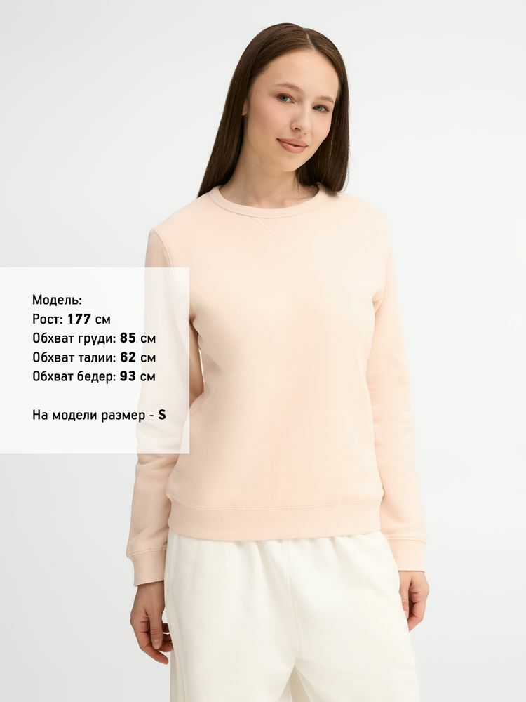 Женская утепленная толстовка с круглым вырезом и декоративной треугольной вставкой. Лейбл производителя в боковом шве изнутри, в шве горловины — только бирка с размером, что позволяет вам нанести свой логотип.