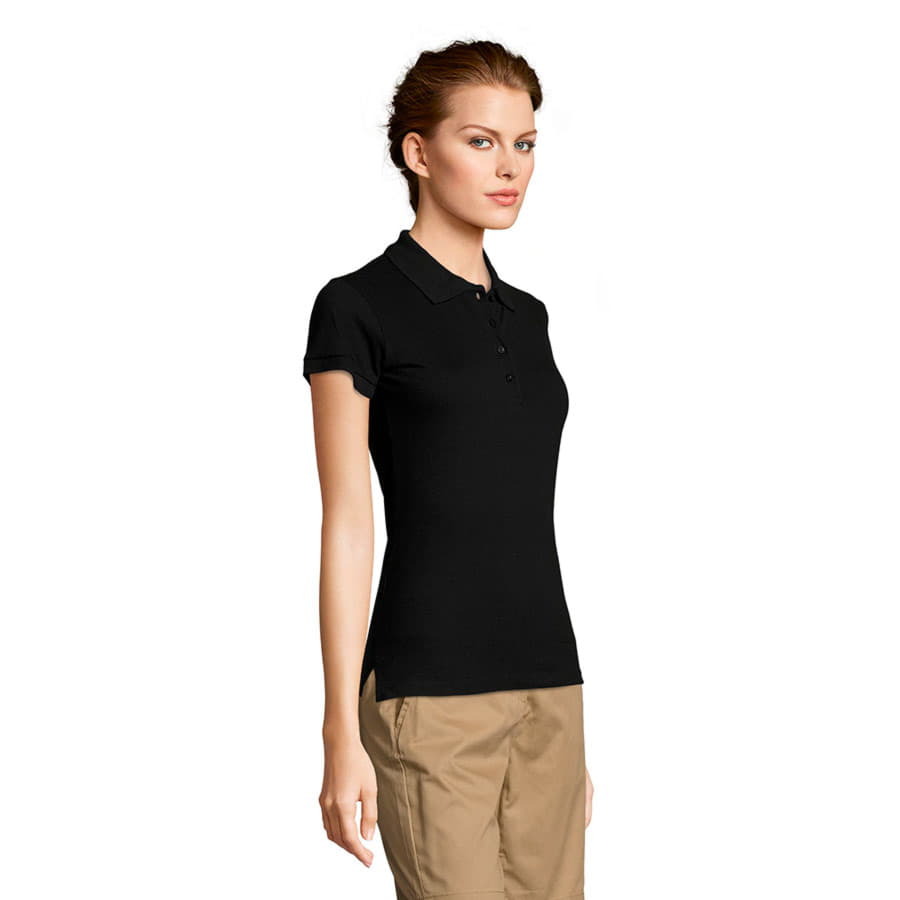 Женская рубашка поло.Прилегающий силуэт.Прямой низ с боковыми разрезами.Воротник и манжеты из рибаны в тон изделия.Ворот укреплен тесьмой.На планке воротника 4 пуговицы в тон изделия.