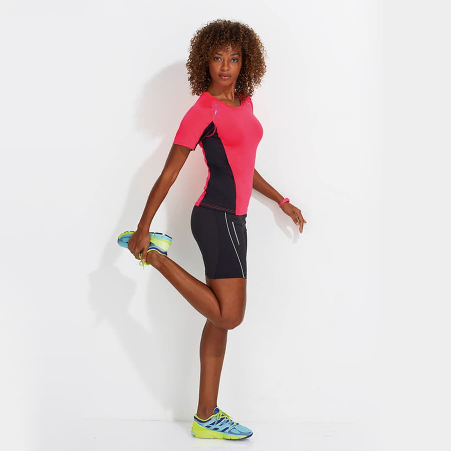 Цвет, близкий к Pantone 11-0601 TCX Контрастная женская футболка SYDNEY WOMAN с короткими рукавами реглан и круглым воротом специально предназначена для бега и активных занятий спортом. Светоотражающие элементы делают ее обладателя заметным даже в темное время суток, а боковые вставки из «дышащей» сетки предназначены для вентиляции и отвода влаги.