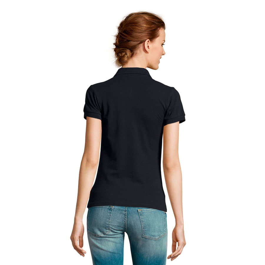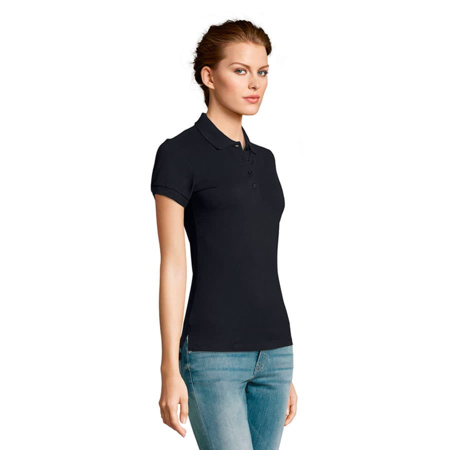 Женская рубашка поло.Прилегающий силуэт.Прямой низ с боковыми разрезами.Воротник и манжеты из рибаны в тон изделия.Ворот укреплен тесьмой.На планке воротника 4 пуговицы в тон изделия.