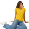 Женская футболка из натурального хлопка с элегантным V-образным вырезом. Материал отлично подходит для нанесения рекламной информации. Натуральная ткань не вызывает раздражения кожи.