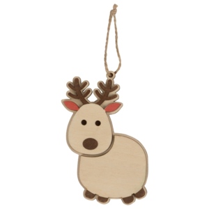 Елочная игрушка в виде праздничного символа - "новогоднего" оленя. Изготовлен из нескольких слоев березовой фанеры и украшен тонировкой.