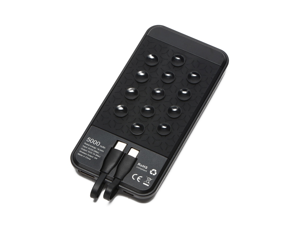 Универсальный внешний аккумулятор с функцией беспроводной зарядки. Имеет 2 встроенных кабеля USB-C и Lightning, также есть отдельный зарядный кабель micro USB в комплекте. На корпусе имеются присоски для надежного крепления к смартфону. - Универсальное применение: беспроводная зарядка, встроенные кабели. - Присоски для крепления к смартфону. - Легкий и компактный.