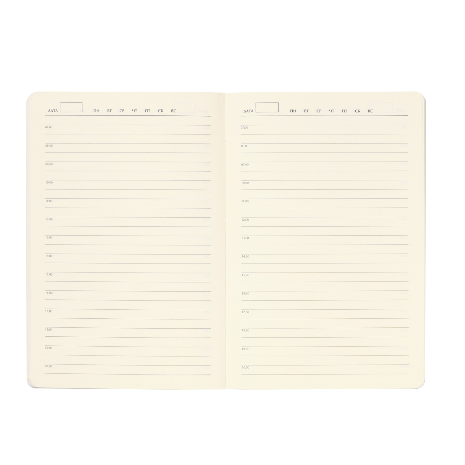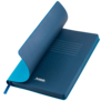 Яркий и выразительный дизайн ежедневника Latte New не может остаться незамеченным. Минималистичный, но завершенный внешний вид аксессуара обусловлен удачным сочетанием оттенков синего. Гибкая обложка с закругленными уголками выполнена из приятного на ощупь, слегка прорезиненного материала. Она не образует заломов, не расслаивается и устойчива к повреждениям. Покрытие обложки имеет едва заметный блеск и мелкозернистый рисунок, имитирующий искусственную кожу. Яркий внешний вид создается контрастными элементами: яркий и свежий голубой цвет обложки сочетается с глубоким синим цветом форзаца и среза. Форзац, нахзац и срез матовые. Кремовые скругленные страницы выполнены из шелковистого офсета. Они гармонично оттеняют свежесть основных цветов, уравновешивая цветовую композицию. Гладкое атласное синее ляссе с легким отливом выполнено в тон форзаца. Упаковка: пластиковая коробка – есть.