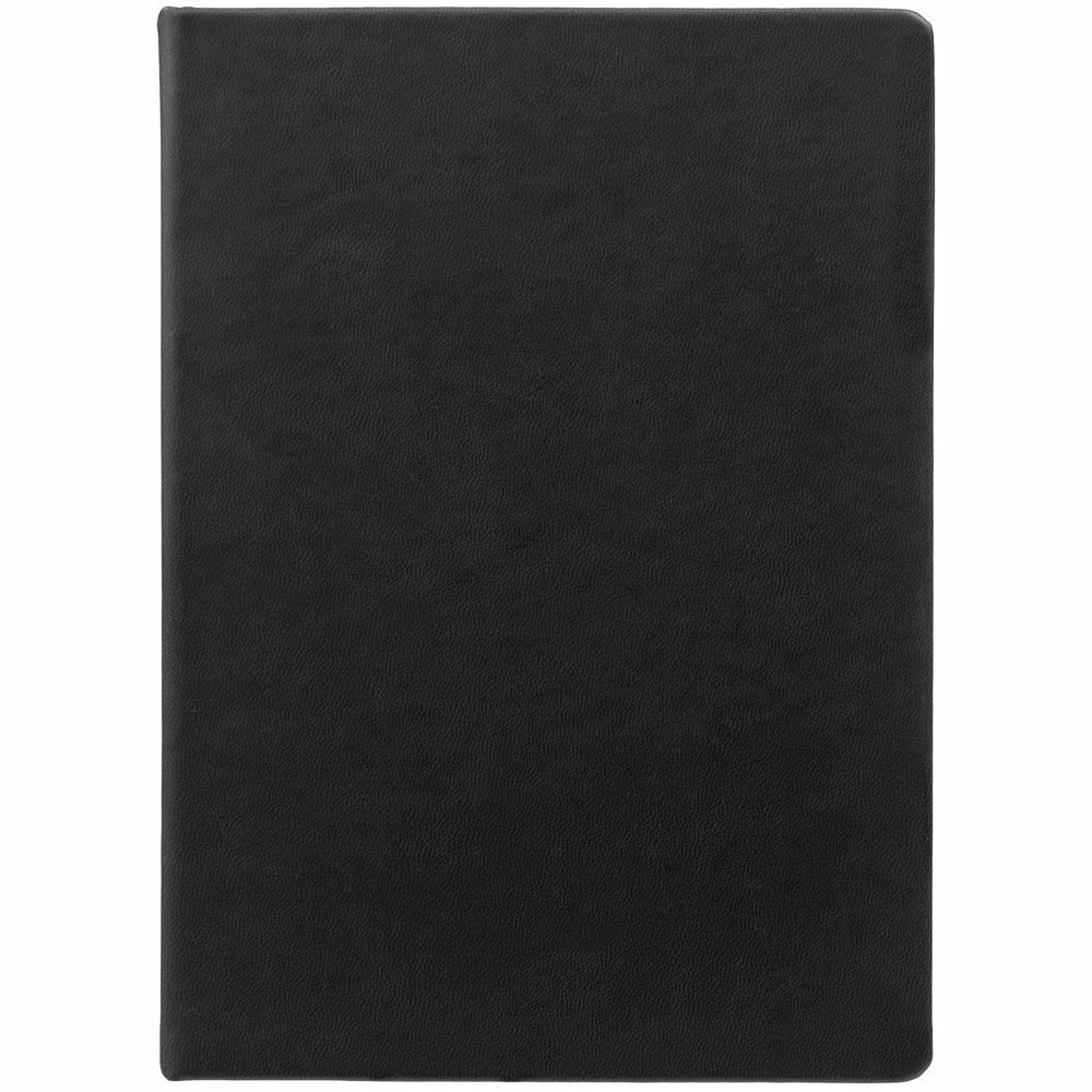 Ежедневник с твердой обложкой и тонированным обрезом. Выполнен из материала Latte, черный, дополнен ляссе в цвет обложки.