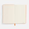 Ежедневник с гибкой обложкой, выполнен из материалов Soft Touch Pearl, оранжевый ОО, и Latte, оранжевый (внутренняя часть обложки), дополнен ляссе в цвет обложки с металлическим шильдиком.