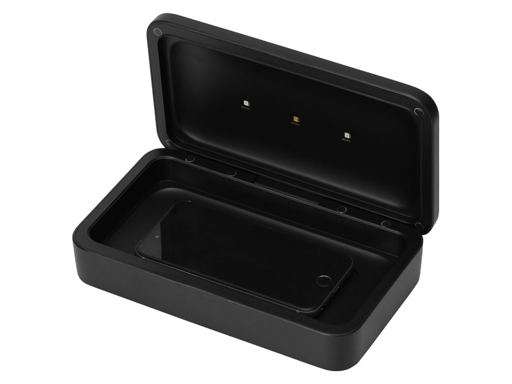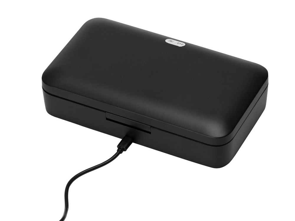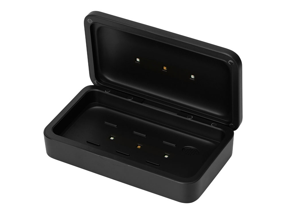 Универсальный стерилизатор эффективно уничтожает 99,9% вирусов и бактерий со всех поверхностей помещенных в него предметов. Подходит для стерилизации смартфонов, часов, наушников, ключей, масок, канцелярии и других небольших вещей. Стерилизатор «Sector» работает от USB, источником может быть ноутбук, ПК, сетевой адаптер или внешний аккумулятор (повербанк). Чтобы начать процесс дезинфекции достаточно положить предметы внутрь, закрыть крышку и нажать кнопку. Отсек для стерилизации 19,2 х 10 х 1,2 см. Стерилизация автоматически завершится через 5 минут. УФ-стерилизатор оснащен автоматической системой безопасности – УФ-лампы отключаются при открытии крышки. В центре крышки расположен модуль беспроводной зарядки. Чтобы активировать функцию ароматерапии - просто добавьте 2-3 капли эфирного масла в ячейку аромадиффузора. - Эффективность стерилизации 99,9%. - Стерилизация поверхностей предметов на 360°. - Удобство использования и безопасность. - Функция беспроводной зарядки. - Ароматерапия.