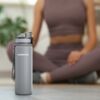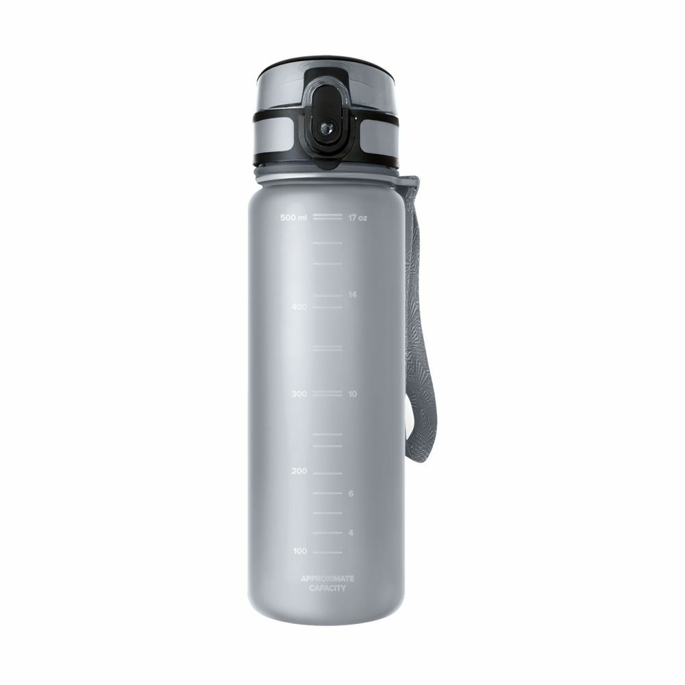 Матовое бархатистое покрытие бутылки приятно на ощупь, широкий ремешок дополнительно фиксирует бутылку во время использования, защитный колпачок не даст воде пролиться в сумке.