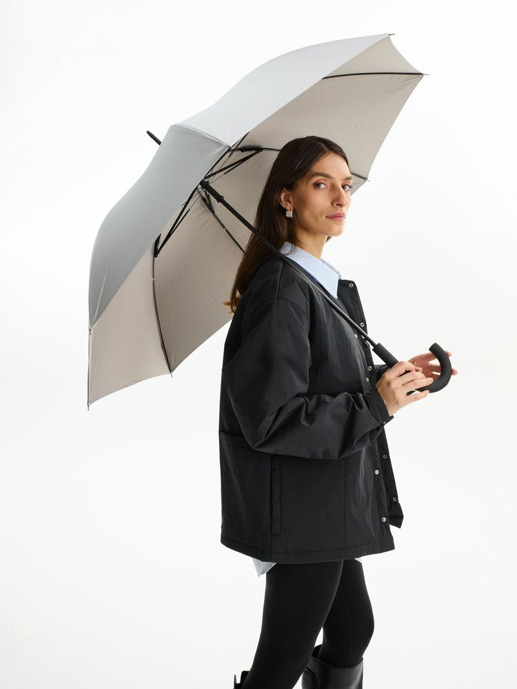 Зонт снабжен системой защиты от ветра. Если при экстремальных порывах ветра купол выгибается, то механизм пружинит, не давая спицам погнуться или сломаться.