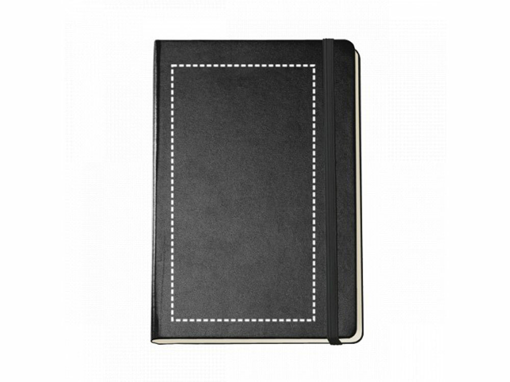 Блокнот формата А5 с картонной твердой обложкой, с внутренним карманом сзади и с 160 страницами в линейку, цвета слоновой кости. Вид нанесения, рекомендуемый поставщиком: трансфер, трафаретная печать, уф- печать, горячее тиснение