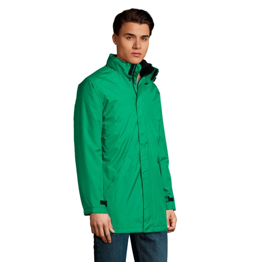 Куртка-парка унисекс на стеганой подкладке ROBYN 170 Основная ткань «оксфорд»: 100% полиэстер с водоотталкивающей пропиткой Стеганая подкладка: 100% полиэстер Утеплитель: 100% полиэстер, 170 г м2 Температурный режим определяется в зависимости от индивидуальных особенностей человека. Куртка на тонком утеплителе рассчитана на евро-зиму (от 0 до -10 С) Стильная теплая парка унисекс прямого кроя станет необходимой в промозглое осенне-зимнее время года. Благодаря пропитке ПВХ - (PVC) поливинилхлорид, ткань полностью прорезинена внутри, что делает ее водонепроницаемой и формоустойчивой. Куртка на застежке-молнии с двумя пуллерами для удобства открытия и планкой на скрытых кнопках надежно убережет от попадания ветра и влаги. Внутренняя планка на верхней части куртки обезопасит от прищемления молнией при закрытии. Высокий воротник- стойка (7 см) с внутренней стороны отделан флисом для мягкости и комфорта, а снаружи прячет в себя капюшон на кулиске с резинкой и стопером. Капюшон без утеплителя всегда можно легко достать и разложить, если погода резко испортится, а потом также убрать. Длинные рукава с утеплителем внутри и на застежке-липучке помогут сохранить тепло. 2 внешних кармана на молнии и один внутренний на застежке-липучке уберегут небольшие предметы от намокания. Изнутри на стеганной подкладке внизу имеется технологический карман для удобства персонализации. Упакована куртка в прозрачный фирменный пластиковый пакет Sol's. Цвет близкий к PANTONE 348C