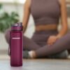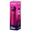 Матовое бархатистое покрытие бутылки приятно на ощупь, широкий ремешок дополнительно фиксирует бутылку во время использования, защитный колпачок не даст воде пролиться в сумке.