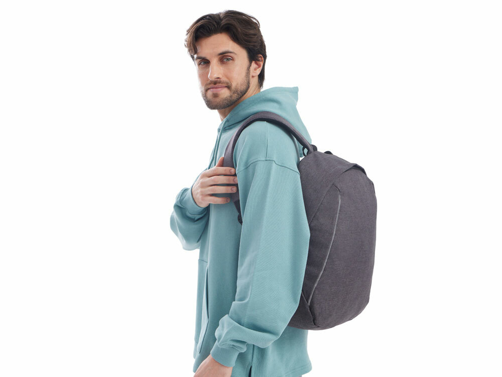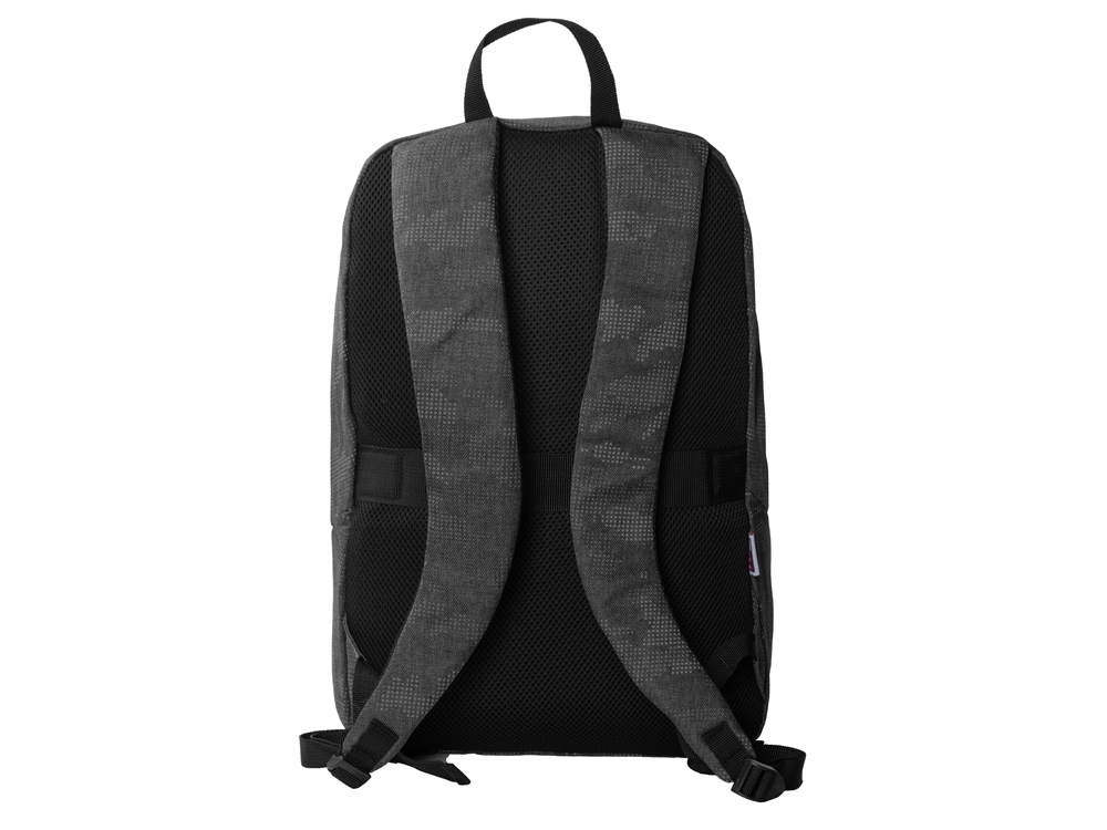 Материал, из которого сделан этот рюкзак, имеет светоотражающее камуфляжное нанесение. Спереди расположены 2 светоотражающие полосы. Все это обеспечивает дополнительную безопасность в темное время суток. - 2 уплотненных внутренних кармана для ноутбука и планшета с креплением на эластичных ремнях - органайзер - карман внутри для мелочей - дышащая сетчатая спинка - ремень для крепления на чемодан - регулируемые по длине лямки
