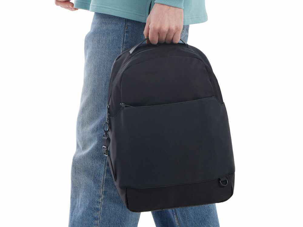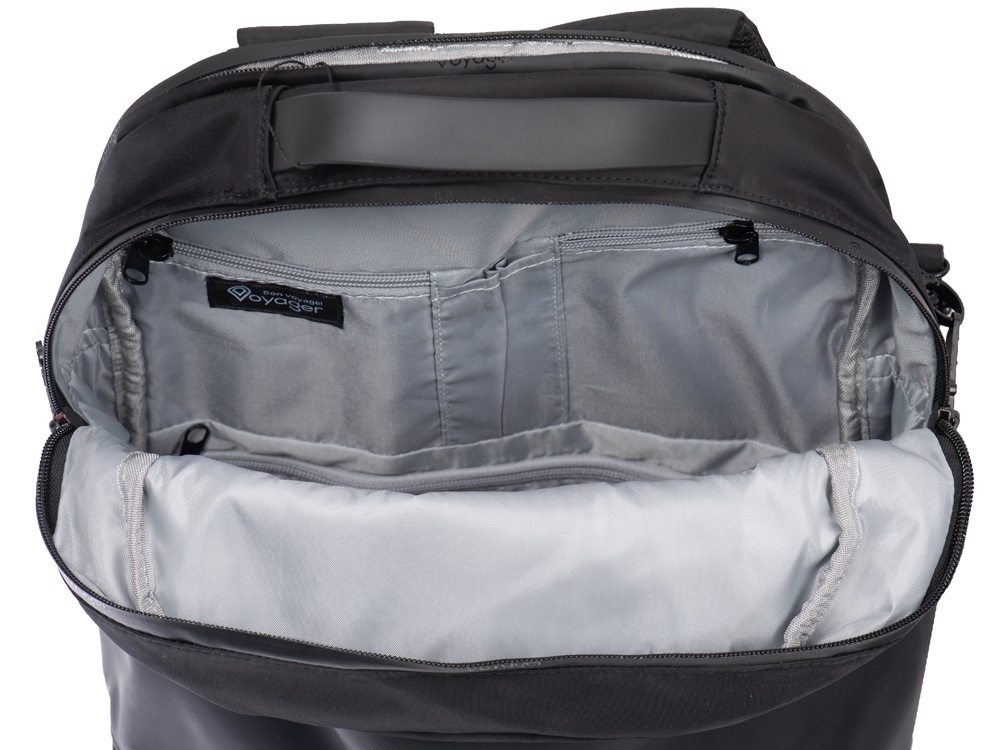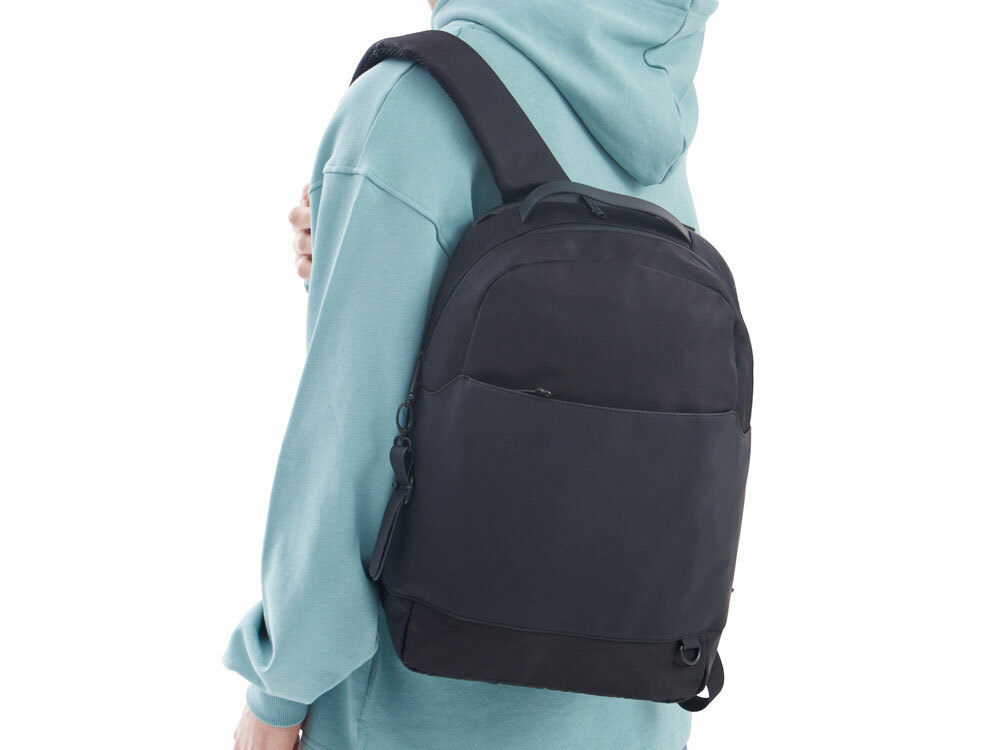 Рюкзак с двумя отделениями: для ноутбука 15.6'' и удобным органайзером с тремя карманами на молнии. - непромокаемая ткань и молнии - не страшен дождь - спереди большой вместительный карман на молнии - сетчатая спинка - карабин - лямки регулируются по длине - ремень для крепления на ручку чемодана - нетканый мешок для хранения в комплекте
