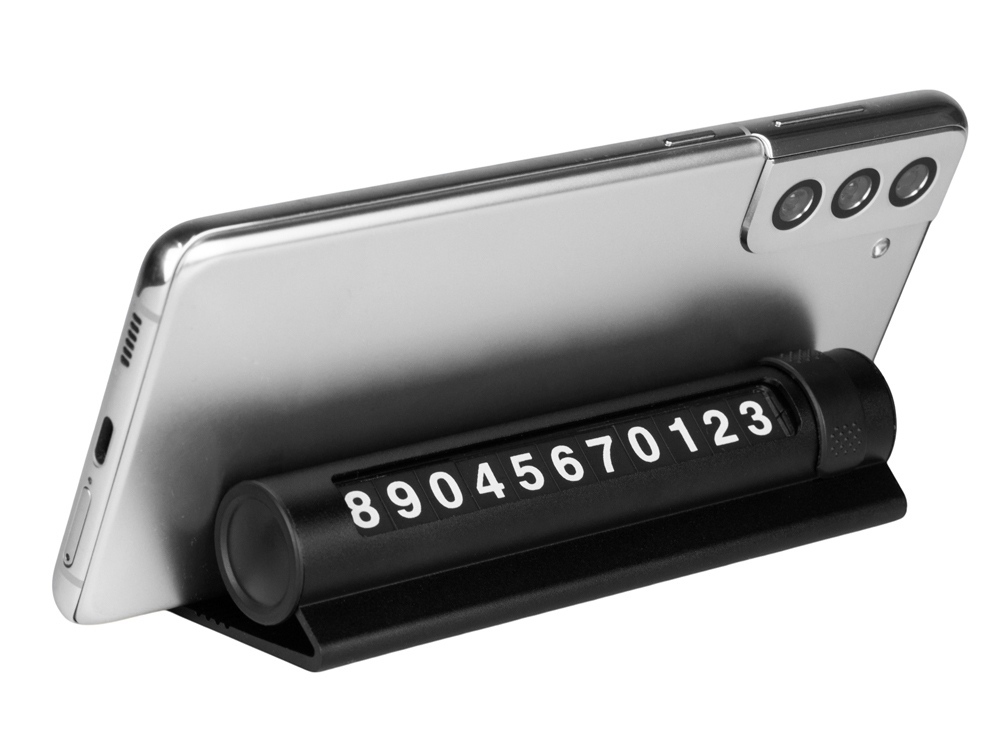 Парковочная табличка идеально подойдет для того, чтобы сообщить о вашем номере телефона водителям, которым может помешать автомобиль. Оборудована поворотным механизмом, что позволяет открыть/закрыть номер за секунду. Съемные магнитные цифры поставляются в комплекте, надежно крепятся на панели и не боятся тряски. При этом обратная сторона парковочной таблички выполняет функции подставки для телефона, который можно удобно установить на приборной панели. Для надежной фиксации в комплект приложены клеевые крепления. - выполнена из металла: долговечная, не боится перепадов температур - удобный поворотный механизм - магнитные цифры фиксируются на панели и не рассыпаются от тряски - подставка для телефона - клеевые крепления