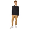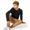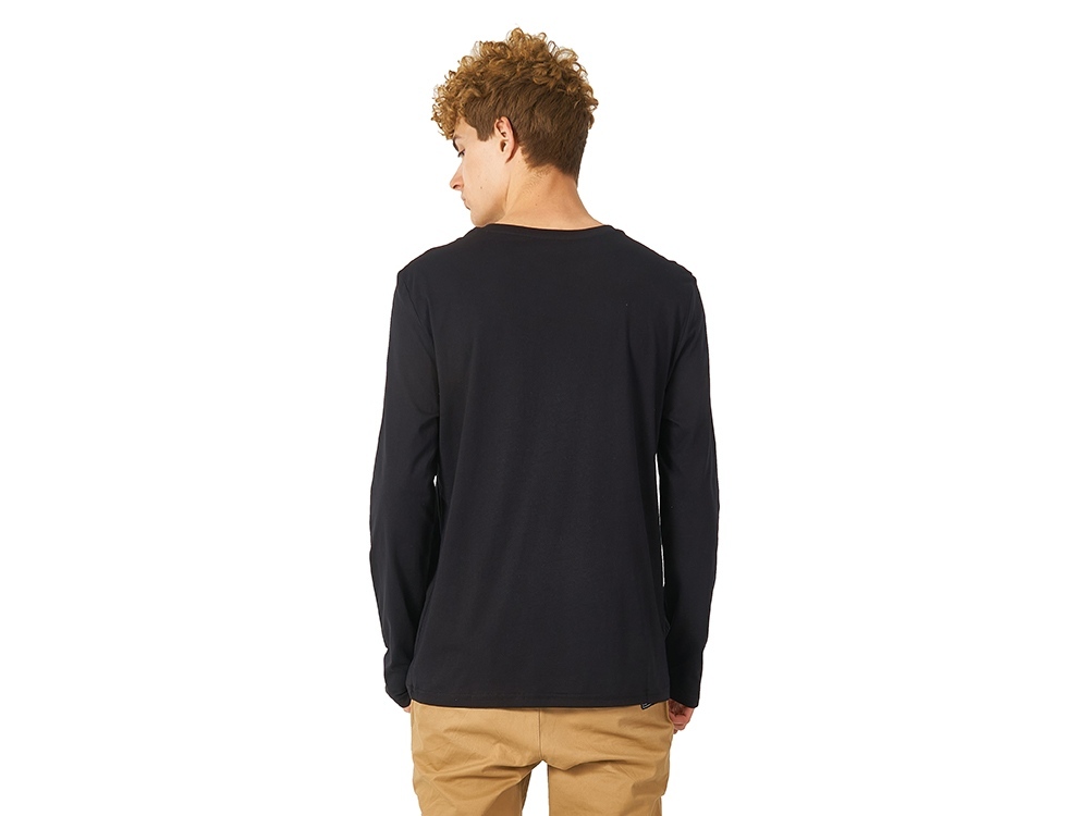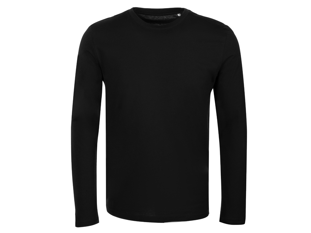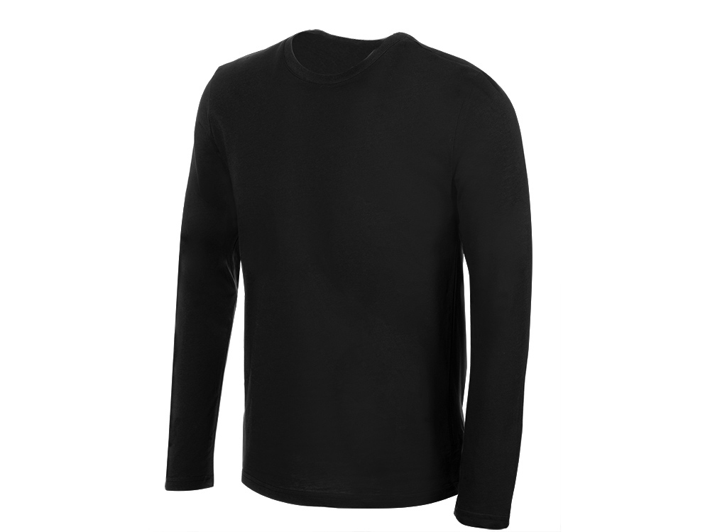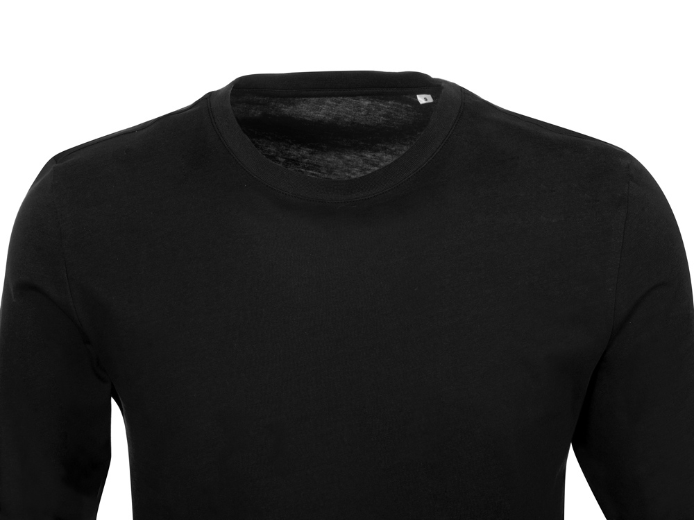 Футболка с длинным рукавом комфортной посадки с боковыми швами. Горловина обработана рибом 1х1 и тесьмой по спинке. Футболка выполнена из хлопкового джерси.