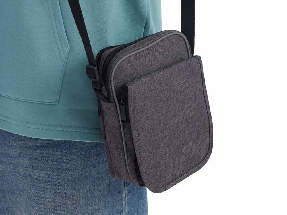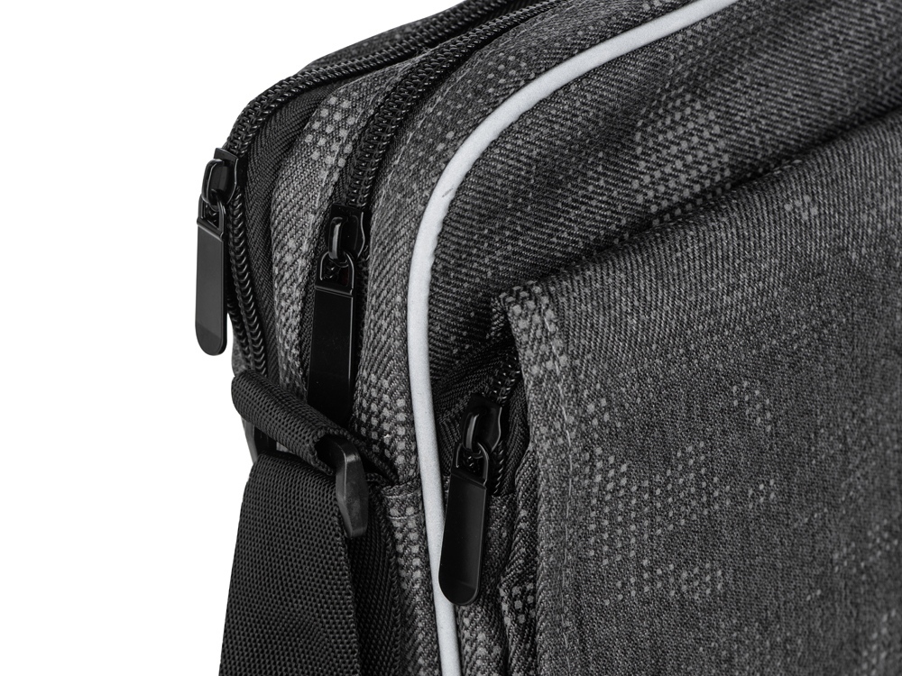 Материал сумки имеет светоотражающее камуфляжное нанесение. Спереди по краю сумки расположена светоотражающая полоса. Все это обеспечивает дополнительную безопасность в темное время суток. Удобная конструкция для всего самого необходимого: 2 отделения и передний карман на молнии с клапаном на липучке. Длинный ремень на плечо регулируется по длине и подойдет для людей любого роста.