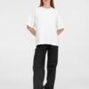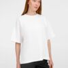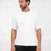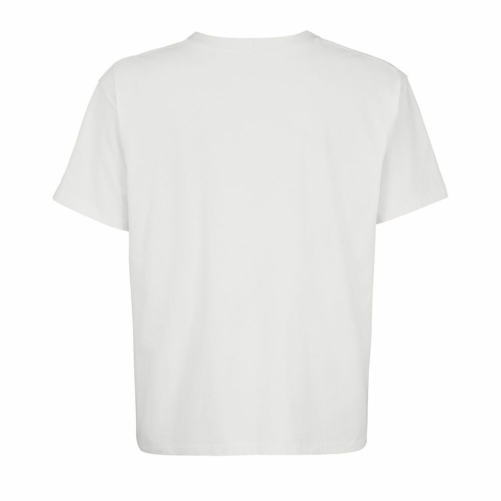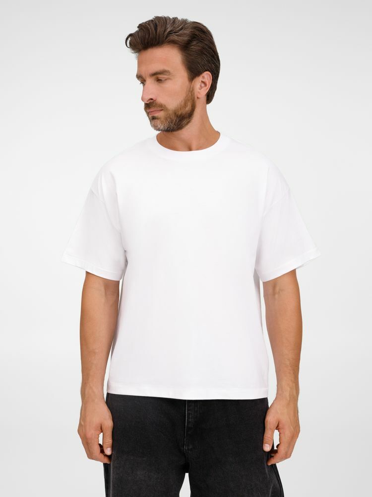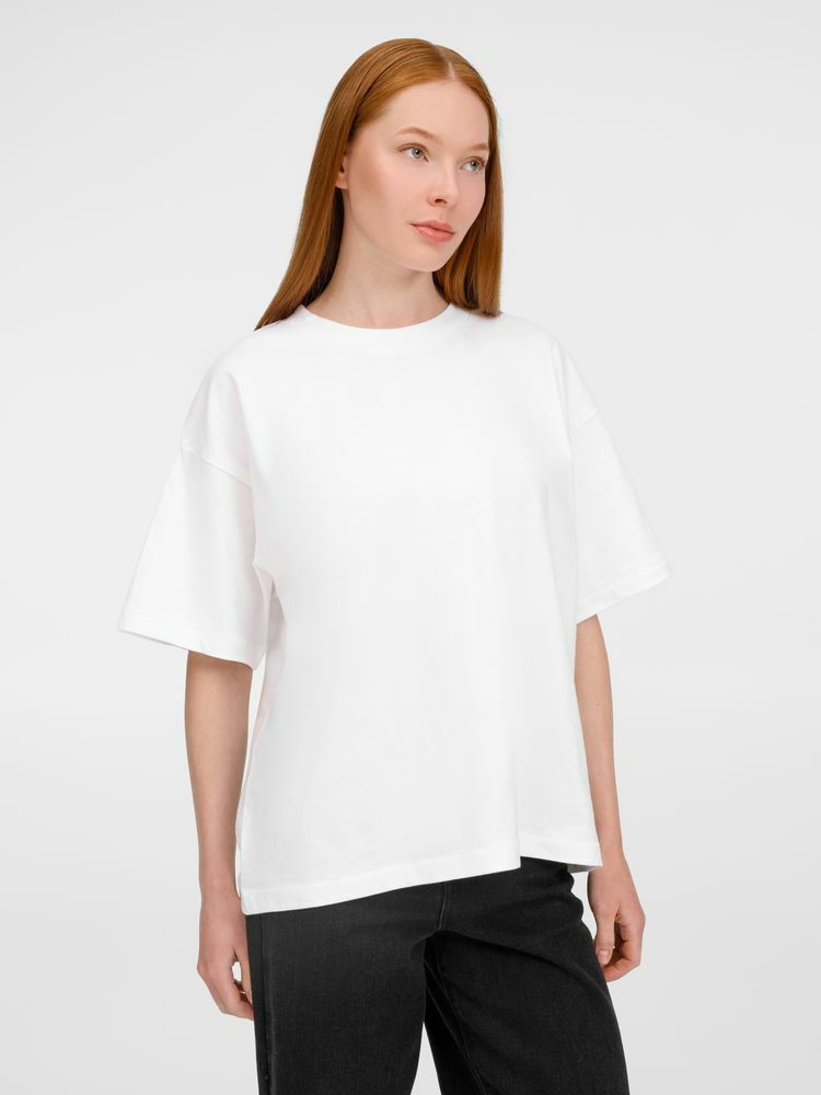 Футболка оверсайз унисекс с круглым вырезом и без боковых швов. Выполнена из смеси переработанного и обычного хлопка. Благодаря повышенной плотности отлично держит форму.