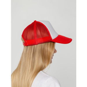 Стандартная модель с 5 клиньями без лобового шва в нестандартном исполнении. Передний клин и козырек выполнены из полиэстера с наполнителем из поролона, боковые и задние клинья — из сетки. Размер регулируется с помощью пластиковой застежки.