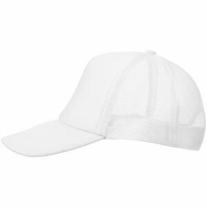 Стандартная модель с 5 клиньями без лобового шва в нестандартном исполнении. Передний клин и козырек выполнены из полиэстера с наполнителем из поролона, боковые и задние клинья — из сетки. Размер регулируется с помощью пластиковой застежки.