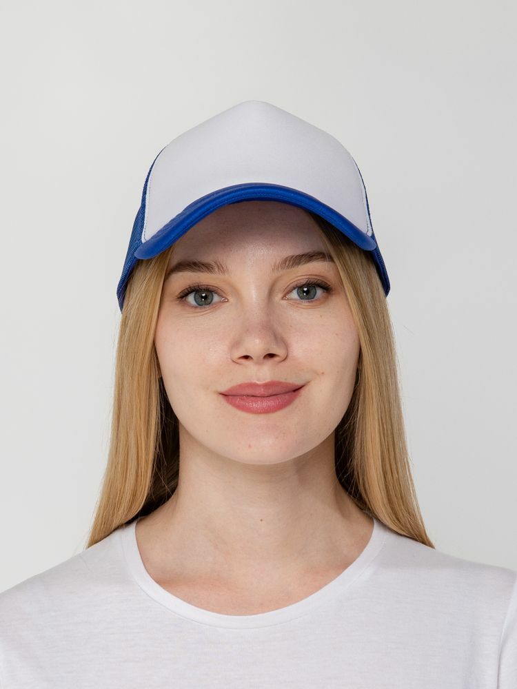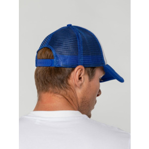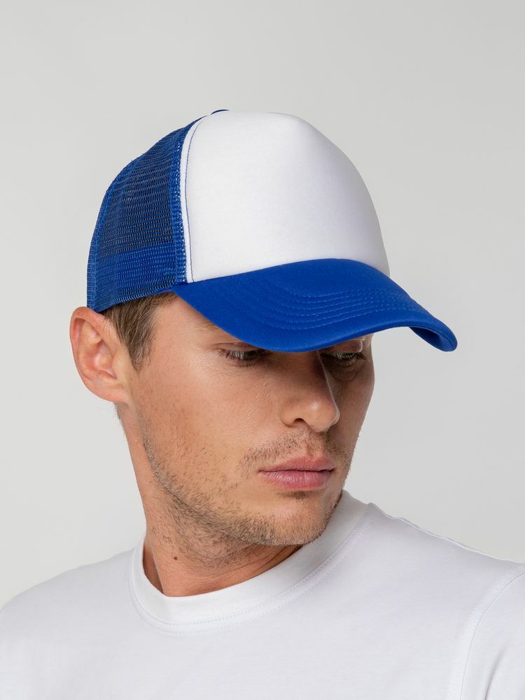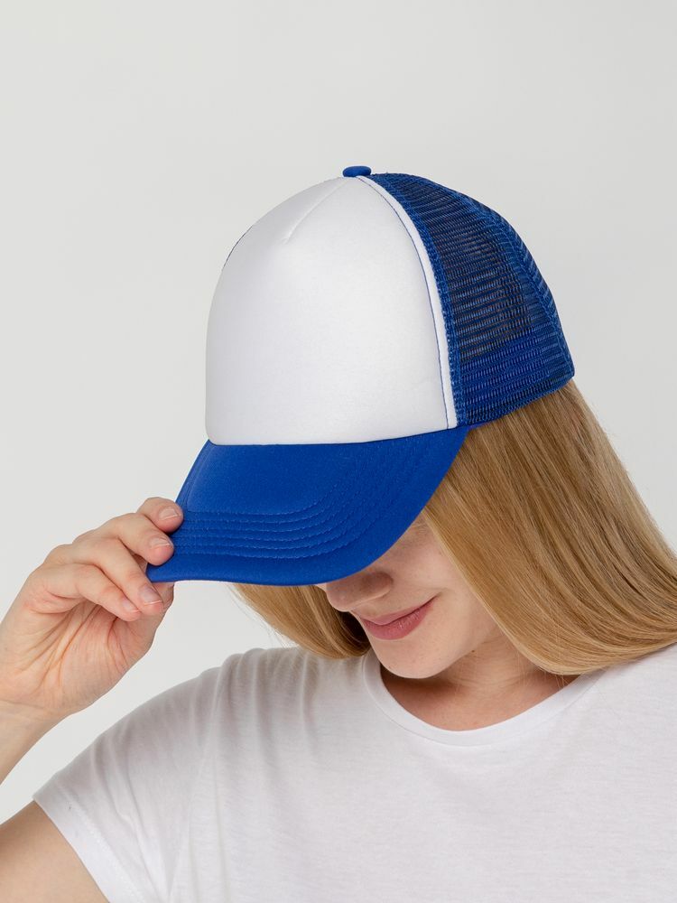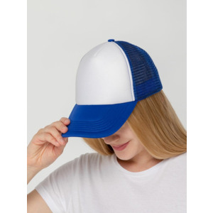 Стандартная модель с 5 клиньями без лобового шва в нестандартном исполнении. Передний клин и козырек выполнены из полиэстера с наполнителем из поролона, боковые и задние клинья — из сетки. Размер регулируется с помощью пластиковой застежки.