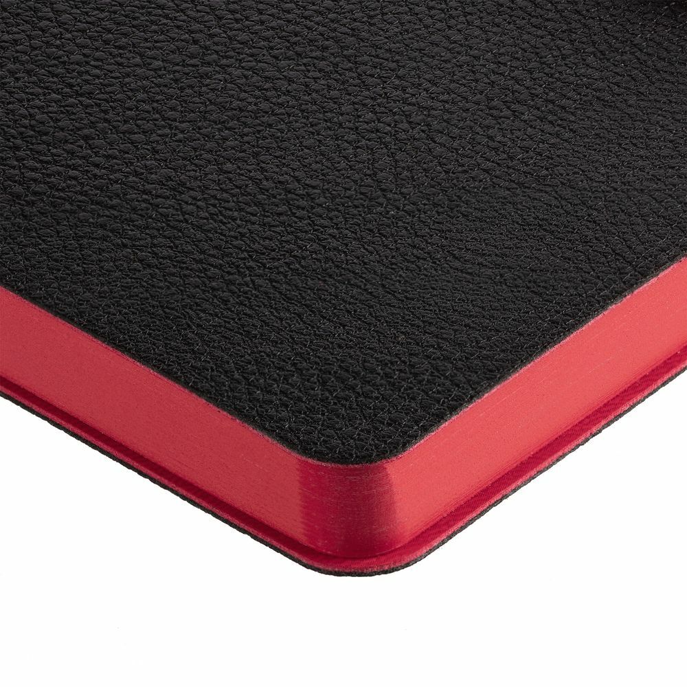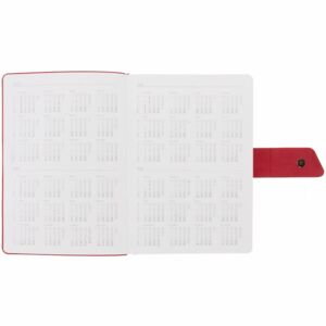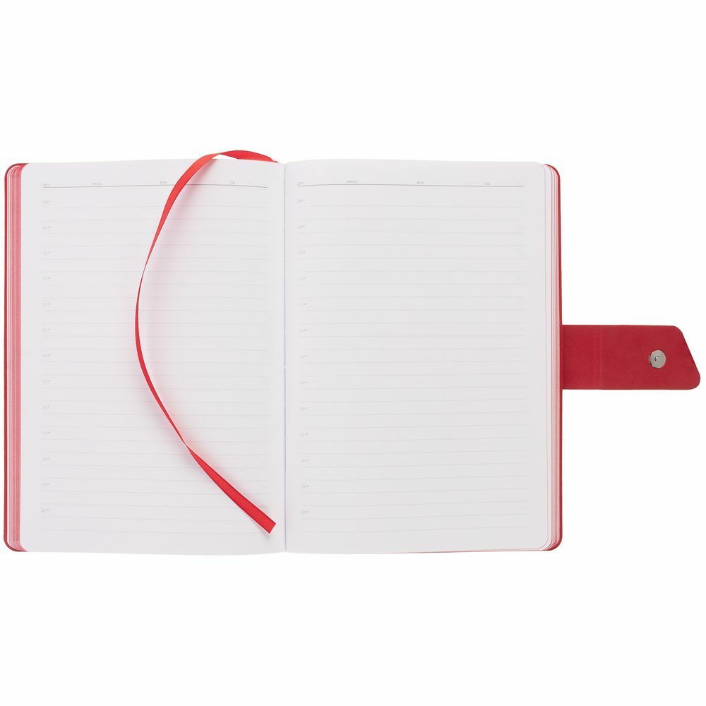 Ежедневник с гибкой обложкой, выполнен из материала La Fite, черный АА и Nubuck, красный РР, дополнен красным ляссе и хлястиком на кнопке.