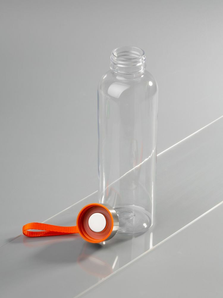 Бутылка для воды классической формы с удобной петлей для переноски и широкими возможностями по нанесению: помимо круговой УФ-печати доступны гравировка крышки или полноцветный трансфер на ремешке.