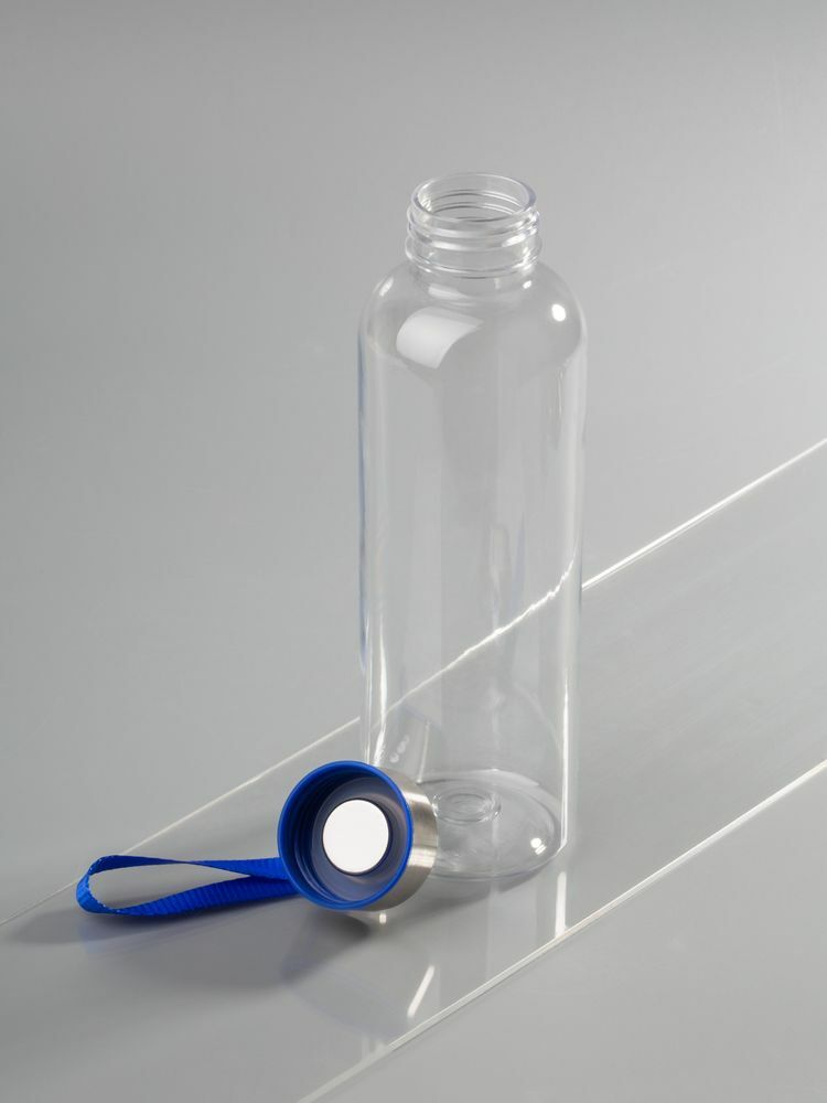 Бутылка для воды классической формы с удобной петлей для переноски и широкими возможностями по нанесению: помимо круговой УФ-печати доступны гравировка крышки или полноцветный трансфер на ремешке.