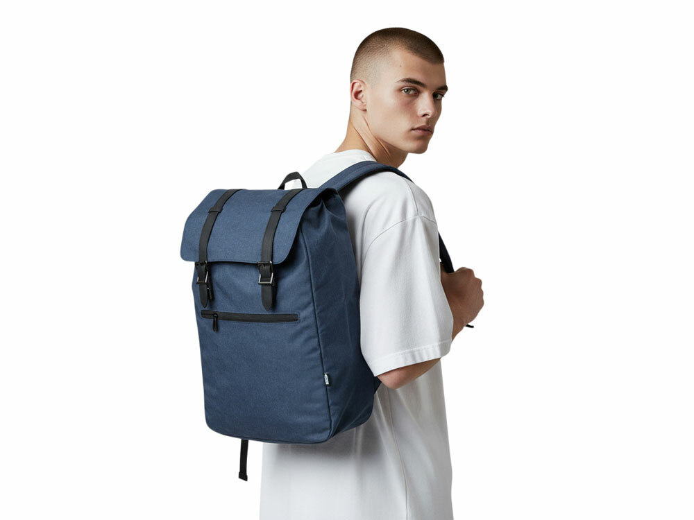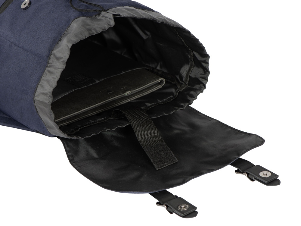Легкий и вместительный рюкзак закрывается с помощью двух магнитов и стяжки-шнурка. Внутри расположен карман для ноутбука, который фиксируется эластичной лентой на липучке. Снаружи - карман на молнии. Лямки регулируютcя по длине.