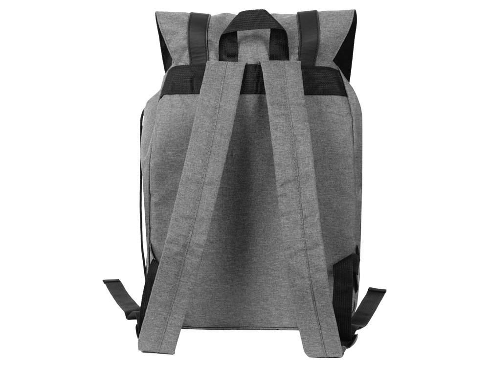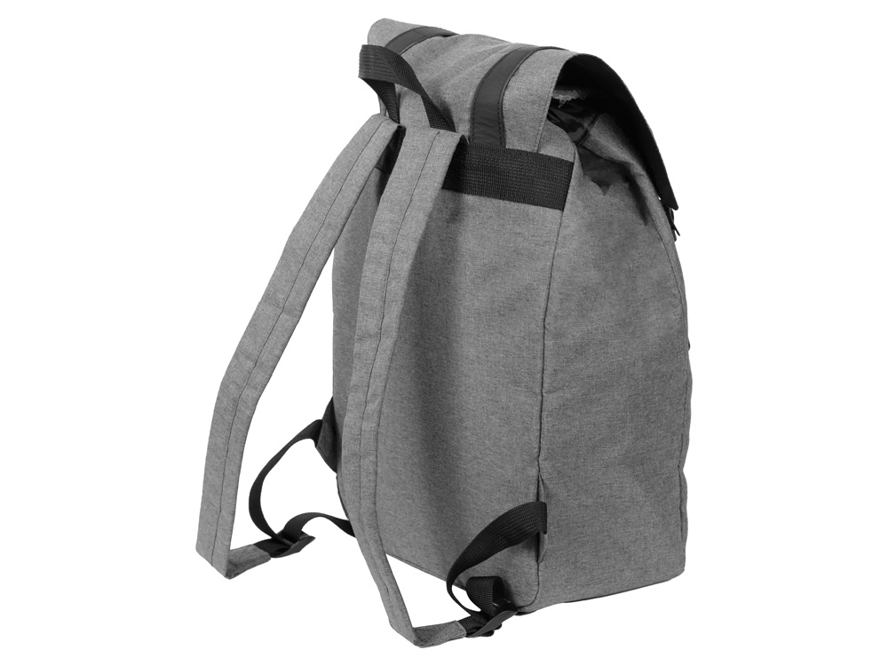 Легкий и вместительный рюкзак закрывается с помощью двух магнитов и стяжки-шнурка. Внутри расположен карман для ноутбука, который фиксируется эластичной лентой на липучке. Снаружи - карман на молнии. Лямки регулируютcя по длине.