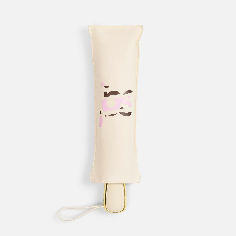 - Пластиковая ручка с золотистой вставкой и кнопкой для автоматического открывания зонта