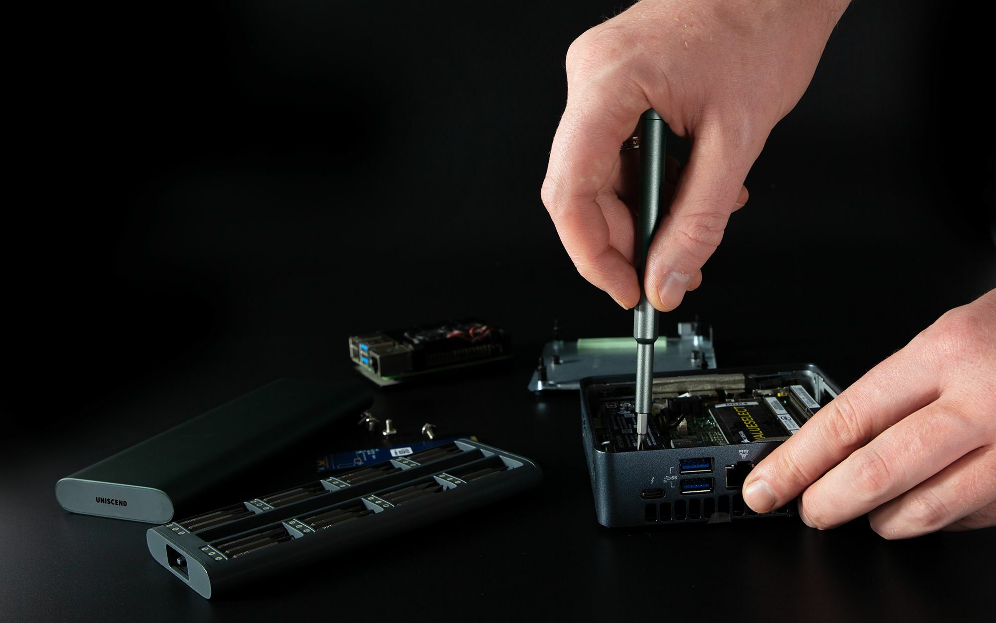 В набор бит для точных работ входят насадки, необходимые для ремонта смартфонов, планшетов, ноутбуков и ПК, включая iPhone, iPad, MacBook Air и MacBook Pro, а также игровые консоли и контроллеры от Nintendo, PlayStation или XBox.