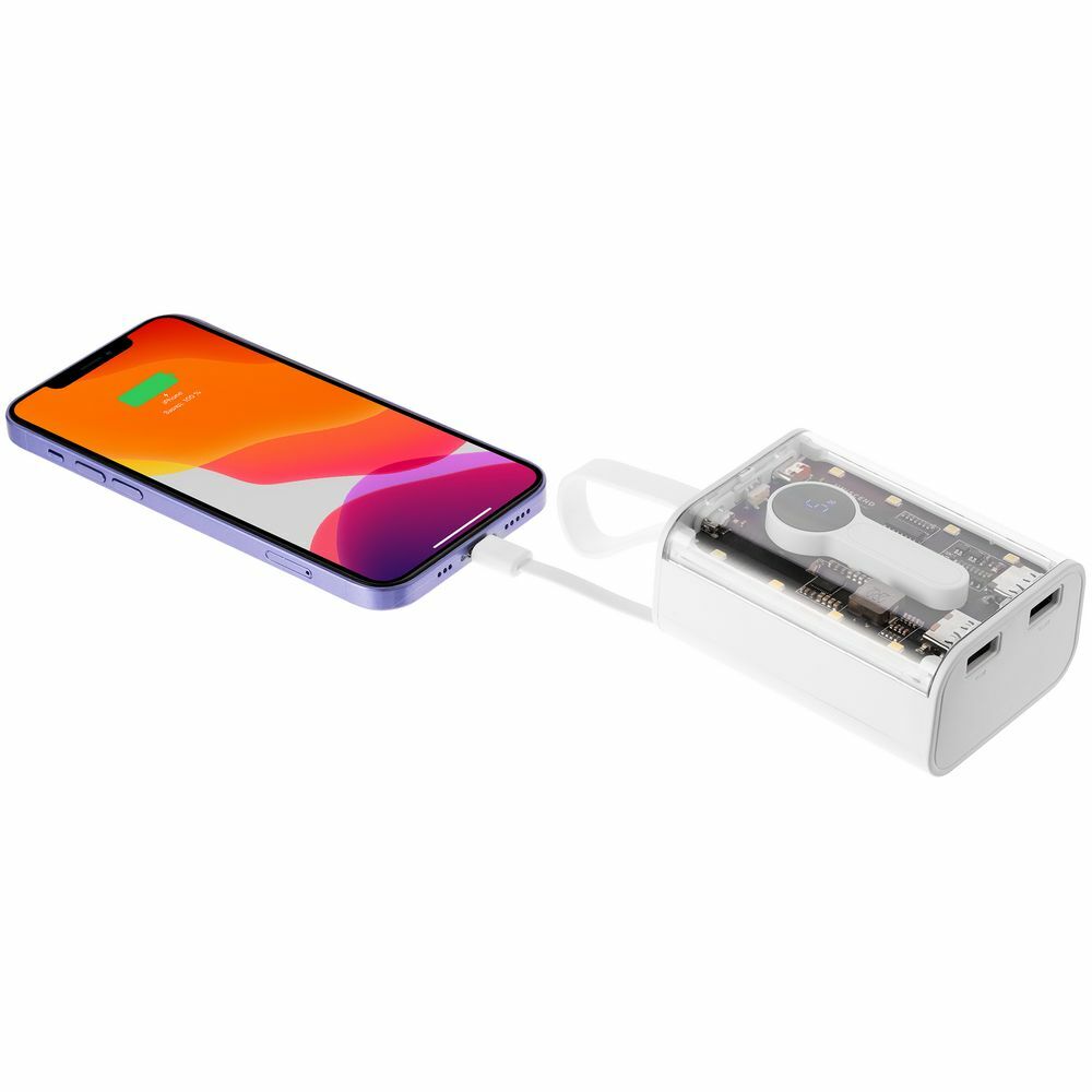 – Выход USB-A QC (оранжевый): 5 В, 3 A; 9 В, 2 A/12 В, 1,5 A, USB-A (черный), Type-C, Lightning (кабели): 5В, 2А - Время зарядки: до 3 часов при использовании зарядного устройства с разъемом Type-C и поддержкой функции QC 3.0
