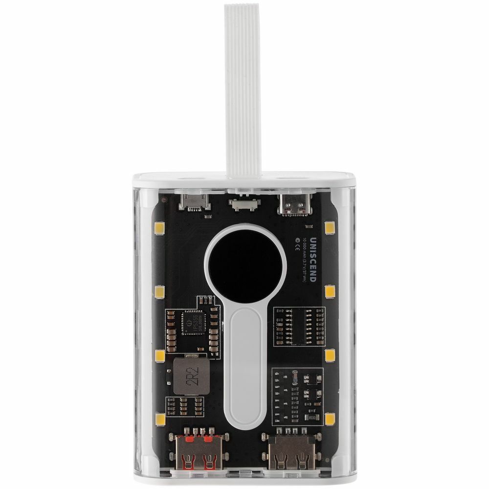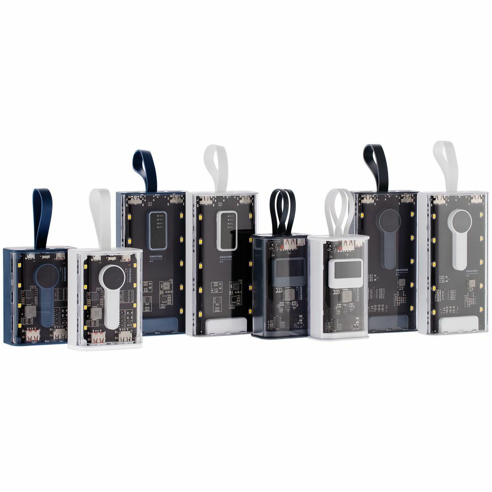 Необычный дизайн коллекции Uniscend Trellis выгодно выделяет новую серию устройств из прозаичного ряда внешних аккумуляторов. Они не поддерживают беспроводную зарядку, зато точно привлекают внимание: под прозрачной панелью хорошо видны электронная начинка и цифровой индикатор оставшегося в аккумуляторе заряда, а мягкая подсветка светодиодами теплого оттенка логичным образом дополняет технологичный внешний вид.