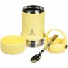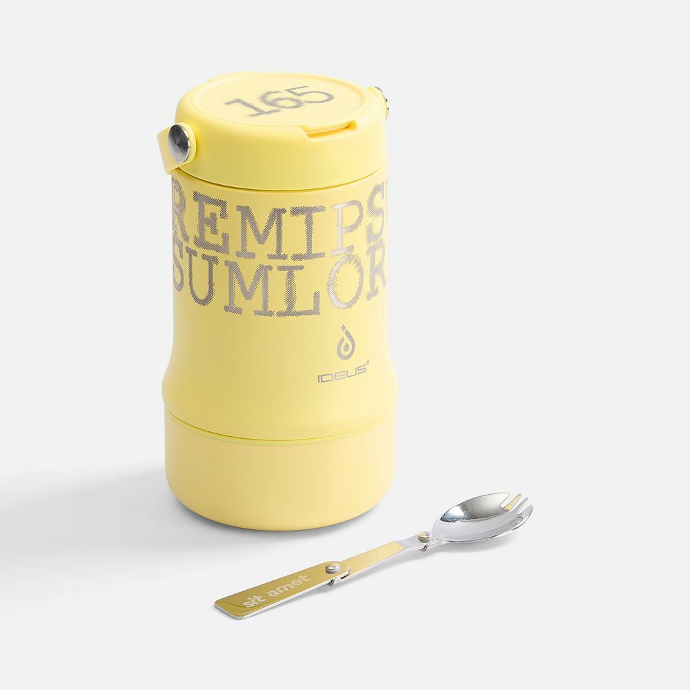 Tabenodo — универсальный многофункциональный термос для работы, школы, похода и путешествия. В компактном корпусе разместились ложка, тарелка и емкость для любимого блюда. Матовая поверхность приятна на ощупь, а силиконовая ручка удобна для переноски.