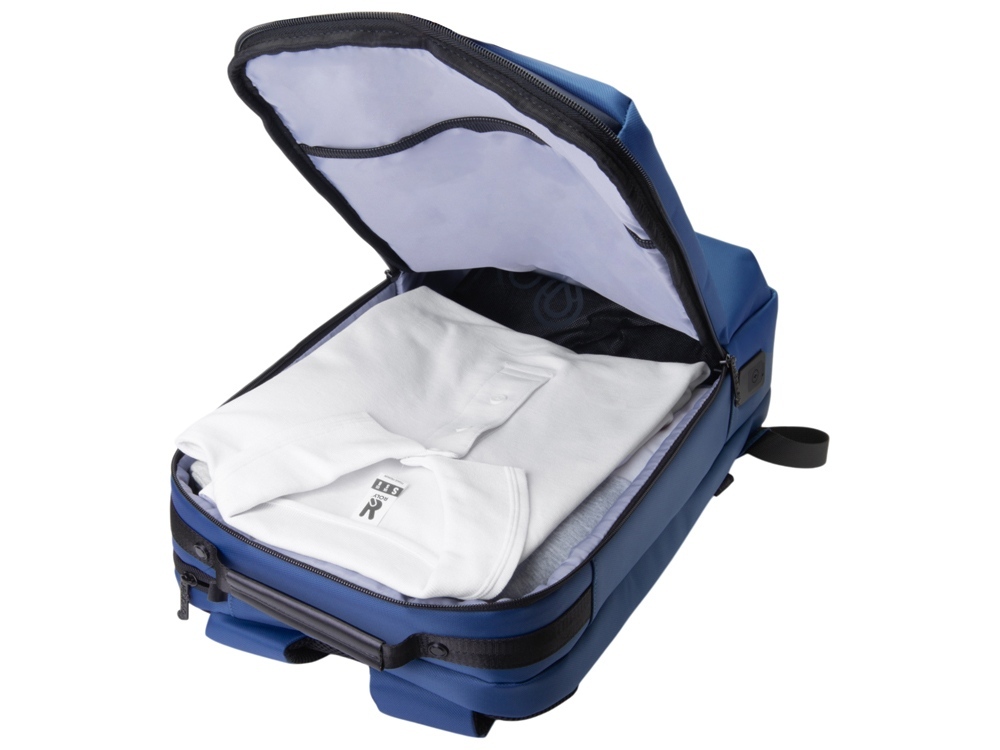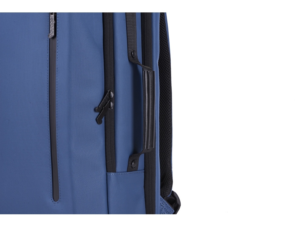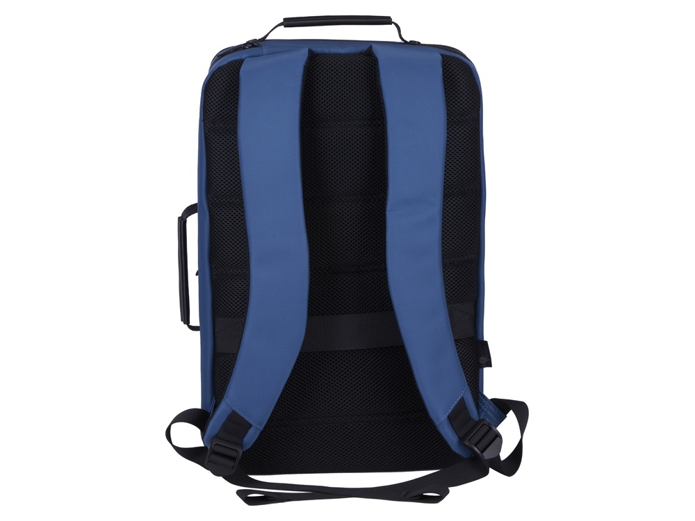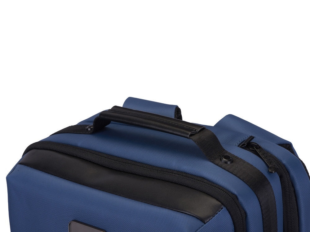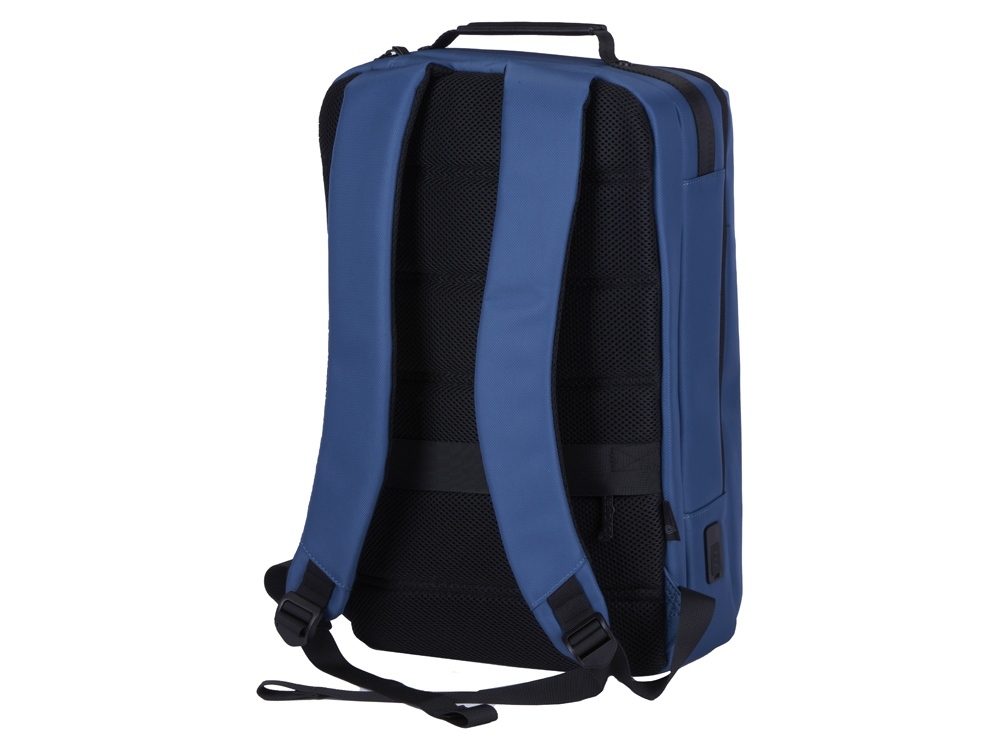 Рюкзак может легко превратится в деловую сумку для командировок, т.к. снабжен дополнительной ручкой для переноски в руке. В комплекте идет съемный металлический шильд под нанесение вашего логотипа. - большой наружный карман на молнии - основное отделение с органайзером с несколькими карманами, в том числе сетчатым на молнии - потайной карман на спинке - USB выход со шнуром - ремень для крепления на ручку чемодана - нетканый мешок для хранения в комплекте