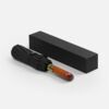 - Деревянная прямая ручка с кнопкой открытия и закрытия зонта