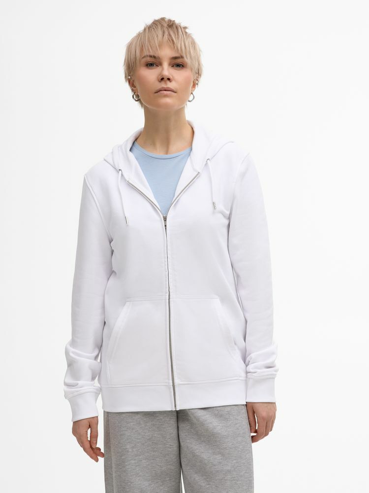 Базовая толстовка унисекс на молнии выполнена из органического хлопка и переработанного полиэстера.