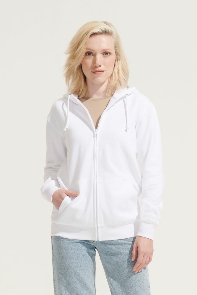 Толстовка унисекс на молнии и с капюшоном выполнена из хлопка с добавлением переработанного полиэстера.