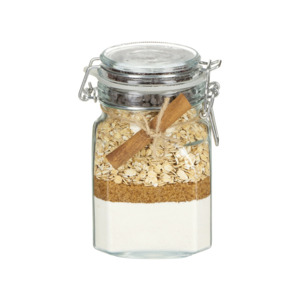 Рецепт приготовления овсяного печенья: · Смешайте все ингредиенты из банки в большой миске. · Добавьте 125 г мягкого сливочного масла, два яйца и замесите тесто до однородной массы. · Скатайте из теста небольшие шарики. · Положите их на смазанный растительным маслом лист для выпекания и немного придавите сверху дном стакана. · Выпекайте 10-15 минут при температуре 180 С⁰ до светло-коричневого цвета.