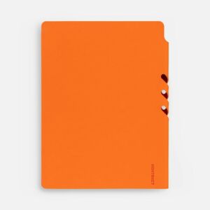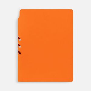 Гибкая обложка выполнена из материала Soft Touch, оранжевый OO и Latte, оранжевый OO (внутренняя часть обложки). Внутри корешка — специальное место для крепления ручки размером до 15х1 см.