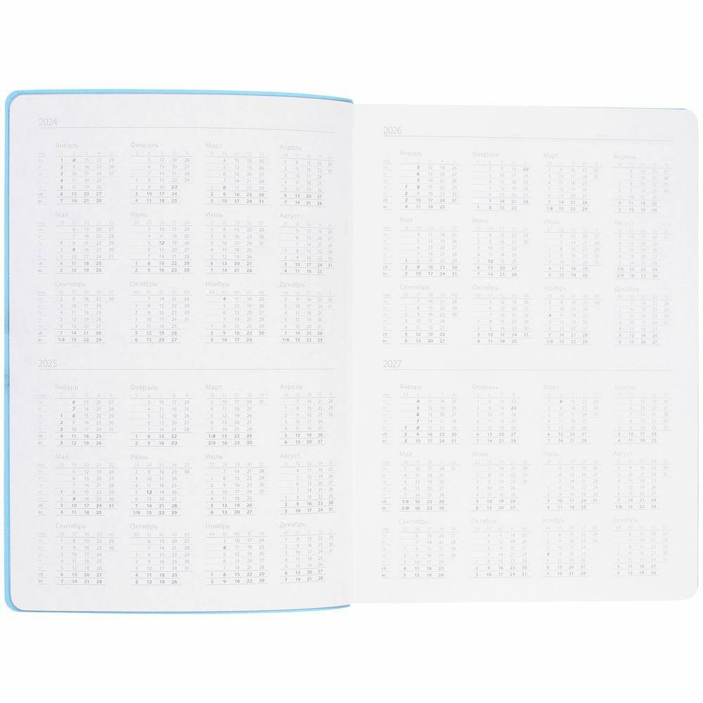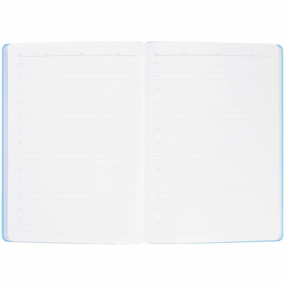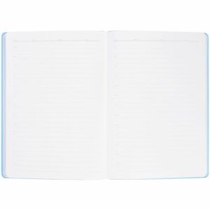 Гибкая обложка выполнена из материала Soft Touch, голубой JJ и Latte, голубой JJ (внутренняя часть обложки). Внутри корешка — специальное место для крепления ручки размером до 15х1 см.