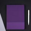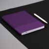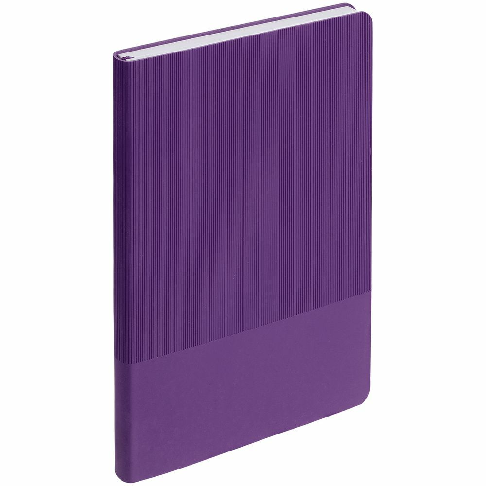 Ежедневник с гибкой обложкой выполнен из материала Soft Touch, фиолетовый UU и Latte, фиолетовый (внутренний материал); дополнен ляссе фиолетового цвета и фактурным тиснением обложки.