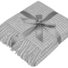 Супер мягкий и теплый плед согреет в холодный день и внесет уют в ваш интерьер. По бокам плед украшен бахромой. В комплекте серая лента, на которой можно нанести ваш логотип.