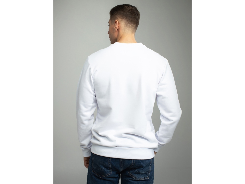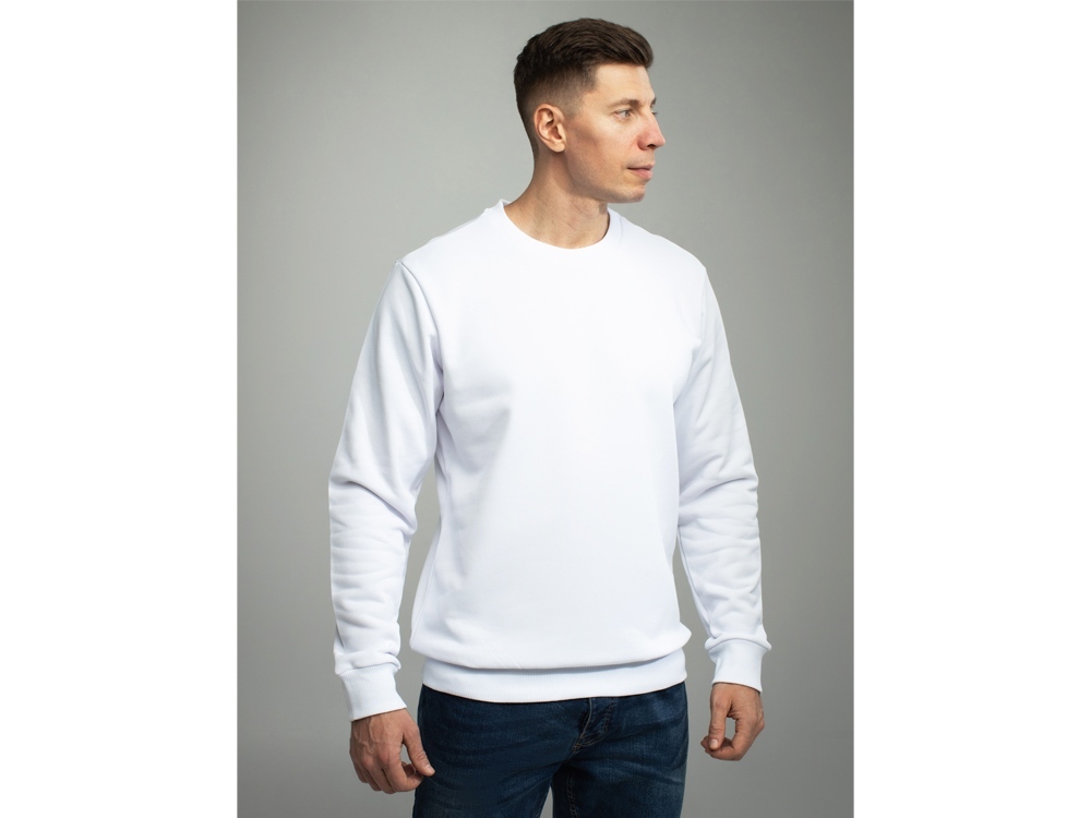 Свитшот прямого кроя с круглой горловиной и втачным рукавом. Особенности плетения полотна позволяют добиться эффекта 100% хлопка с внутренней стороны, обеспечивая гипоаллергенность и комфорт при носке, и 100% полиэстера с внешней стороны изделия, обеспечивая яркость красок нанесения и их износостойкость. Горловина, манжеты и низ зделия выполнены из полотна Кашкорсе (95% хлопок и 5% спандекс).