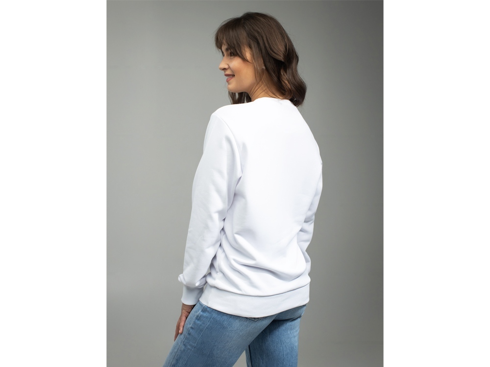 Свитшот прямого кроя с круглой горловиной и втачным рукавом. Особенности плетения полотна позволяют добиться эффекта 100% хлопка с внутренней стороны, обеспечивая гипоаллергенность и комфорт при носке, и 100% полиэстера с внешней стороны изделия, обеспечивая яркость красок нанесения и их износостойкость. Горловина, манжеты и низ зделия выполнены из полотна Кашкорсе (95% хлопок и 5% спандекс).