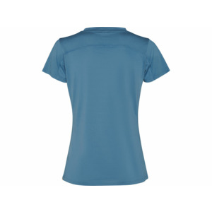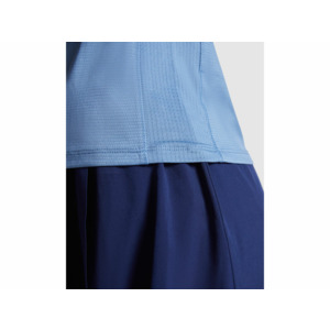 Женская технологическая футболка с короткими рукавами. Легкая ткань из переработанного полиэстера. · Воротник с перекрещенными деталями. · Кокетка сзади и рукава из дышащей ткани. · Направленные вперед и наклонные швы по бокам и плечам. · Закругленный низ. · Комбинация дышащих и эластичных тканей.